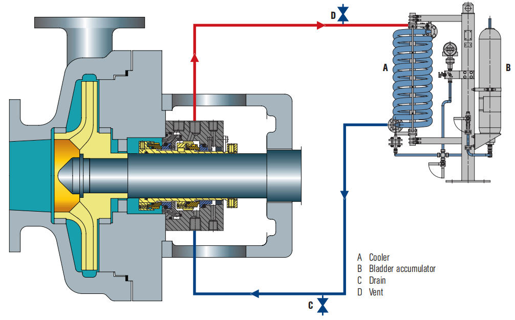 Prietok preplachovacej kvapaliny musí byť dostatočný na odvádzanie tepla z komory mechanického tesnenia.